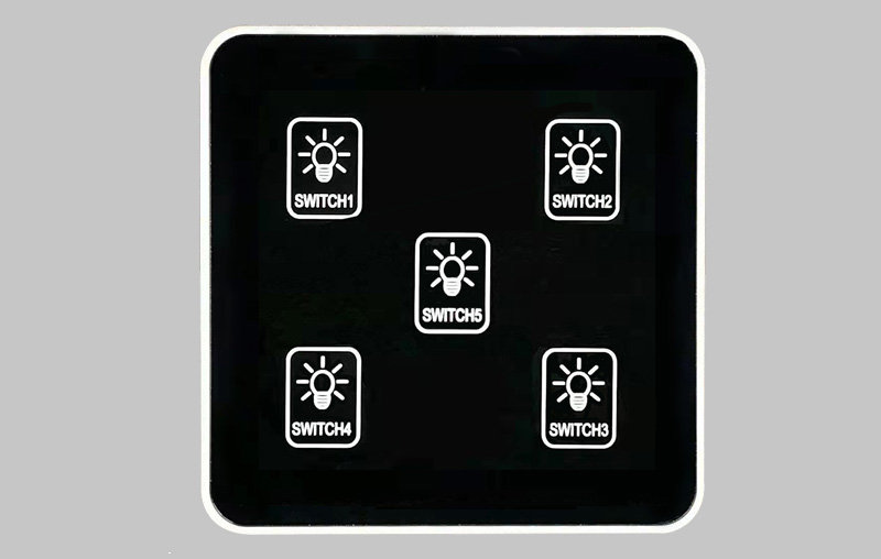 1键2键4键5键6键8键10键12键LED蓝色背光状态显示一体式钢化玻璃面板,防水、防尘,动作灵敏调光设置、场景设定与管理汉字、图案可根据用户要求定制RS485通讯,标准Modbus RTU通讯协议控制对象可设定