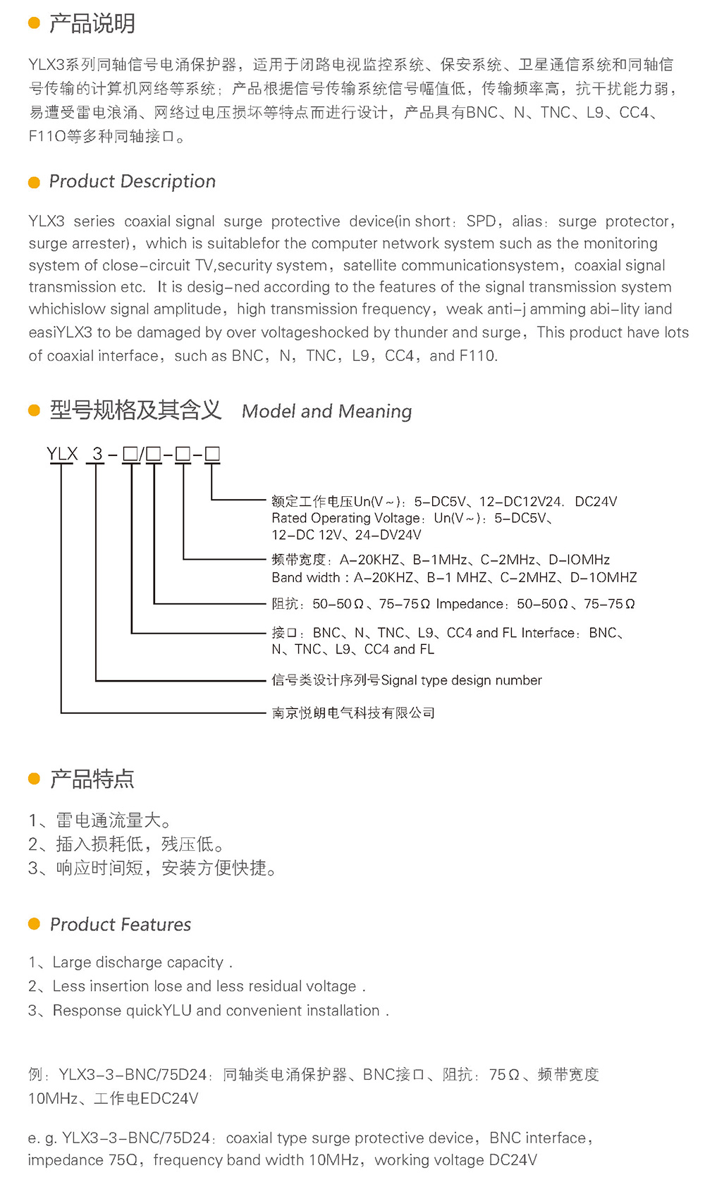 YLX3系列同轴信号电涌保护器,适用于闭路电视监控系统、保安系统、卫星通信系统和同轴信号传输的计算机网络等系统;产品根据信号传输系统信号幅值低,传输频率高,抗干扰能力弱,易遭受雷电浪涌、网络过电压损坏等特点而进行设计,产品具有BNC、N、TNC、L9、CC4、F11〇等多种同轴接口。