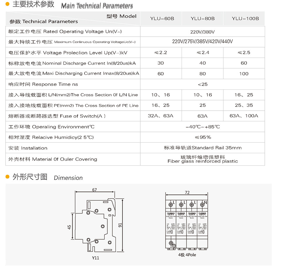 1系列B级电涌保护器适用于交流50/60Hz,380V及以下的TN-S、 TN-C-S、 TT、 IT等供电系统,作为雷击等电位连接,其设计依据符合GB18802.1. IEC61643.1,外壳设计安装在35mm电气导轨上,该产品内置失效脱离装置,当电涌保护器因过流过热、击穿失效时,失效脱离装置能自动的将其从电网上脱离,同时可视告警指示模块由绿色(正常)变成红色(故障)o电涌保护器模块可在线更换。