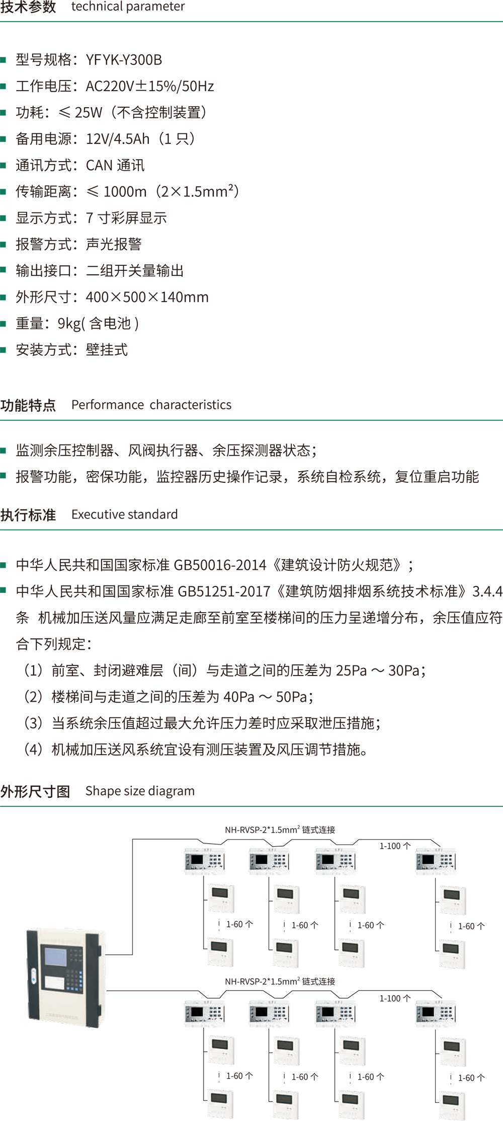 产品特点:监测余压控制器、风阀执行器、余压探测器状态;报警功能,密保功能,监控器历史操作记录,系统自检系统,复位重启功能