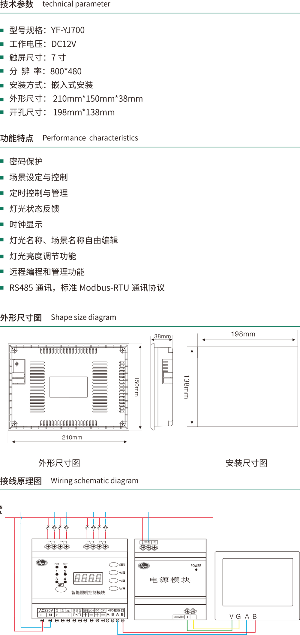 YF-YJ700 液晶智能控制面板