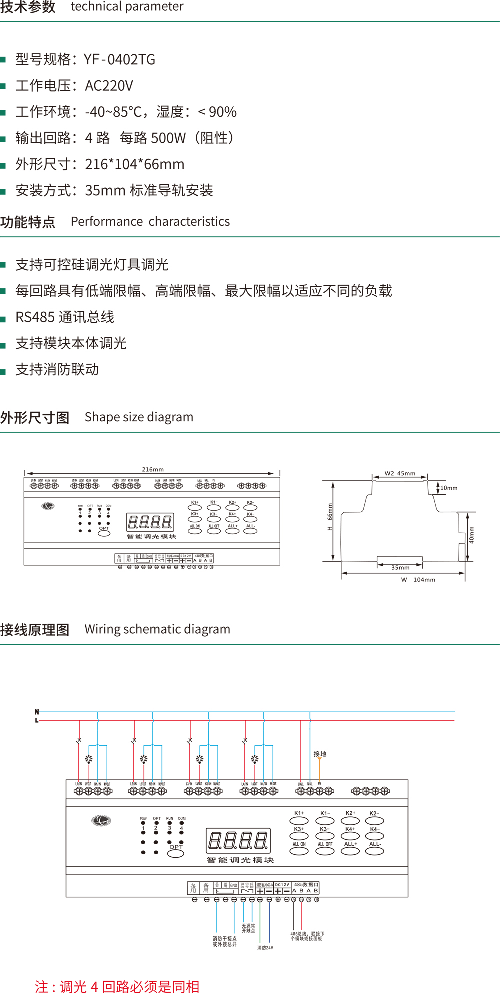 支持可控硅调光灯具调光每回路具有低端限幅、高端限幅、**限幅以适应不同的负载RS485通讯总线支持模块本体调光支持消防联动