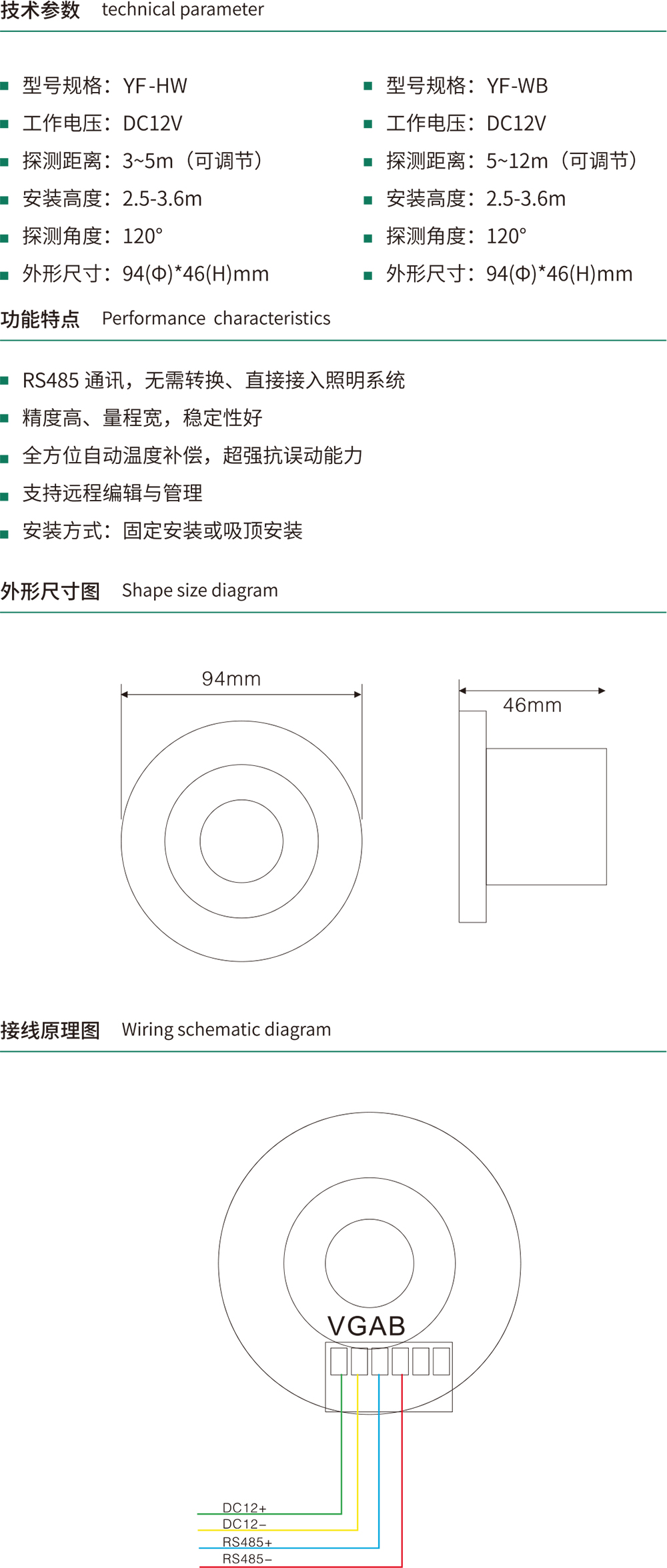 YF-HW 可编程人体红外传感器/YF-WB 可编程微波传感器